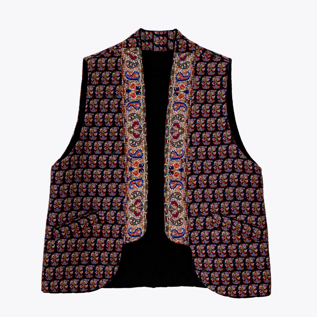 The "tree of life" vest is crafted from natural fiber termeh and dyed with botanical colors